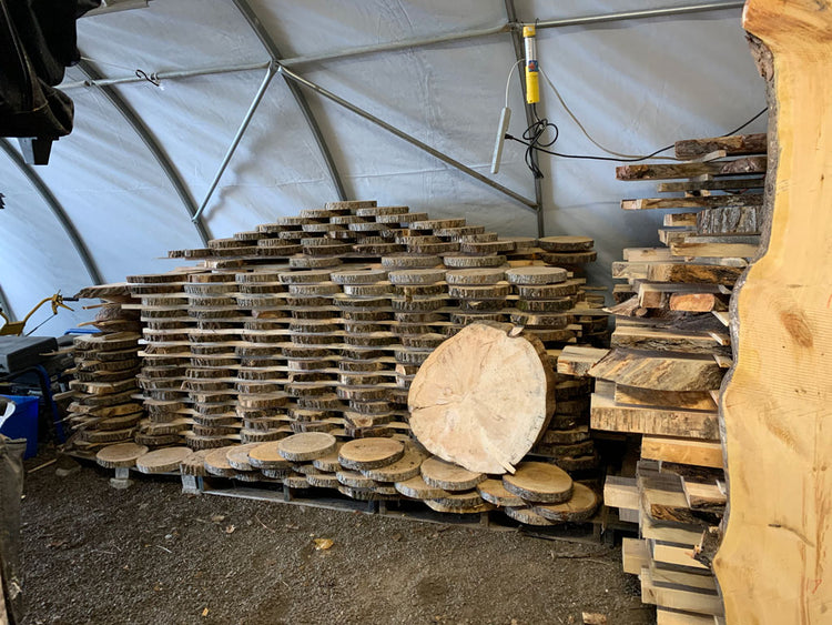 Live edge slabs of various species that have been kiln-dried and ready...