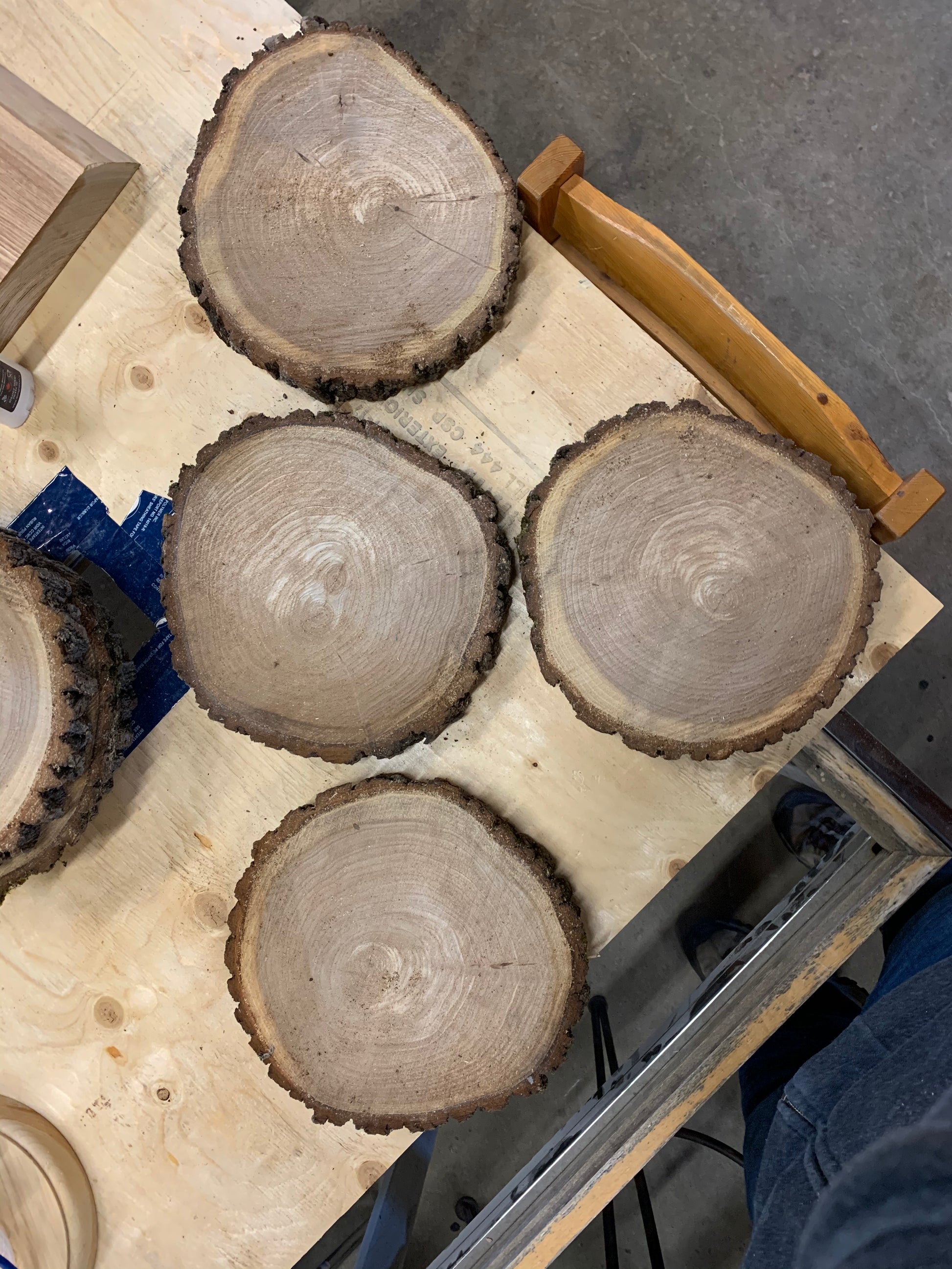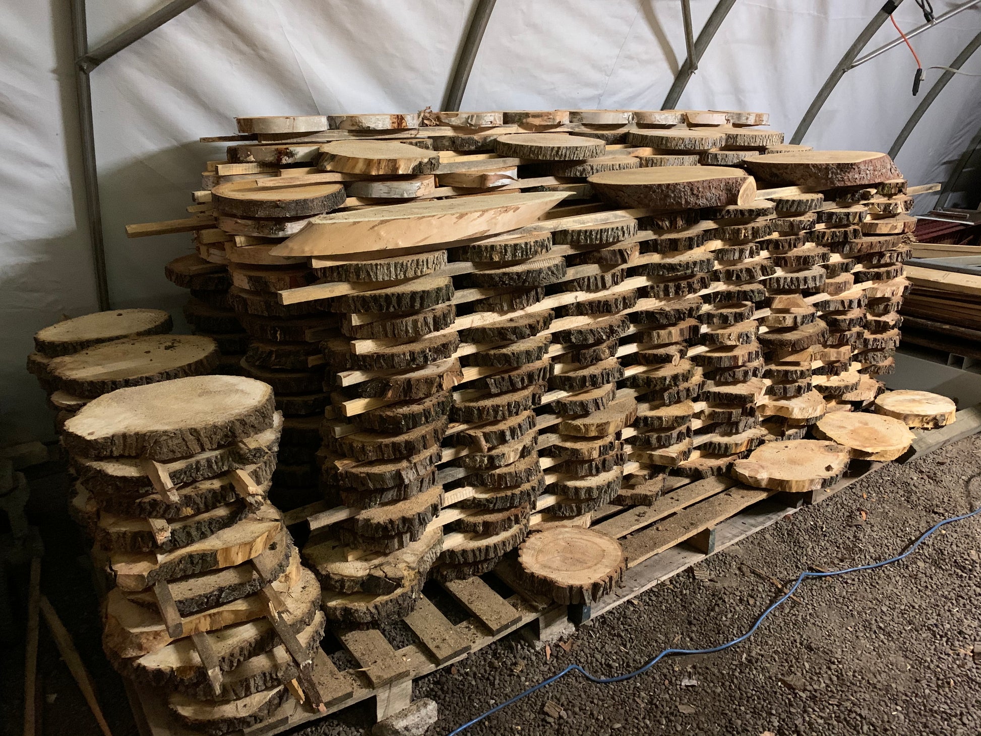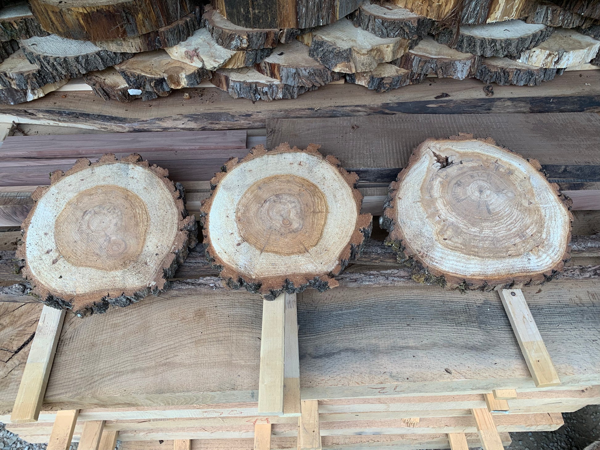 Various species of end-grain wood cut on a sawmill to 1.5" and dried.