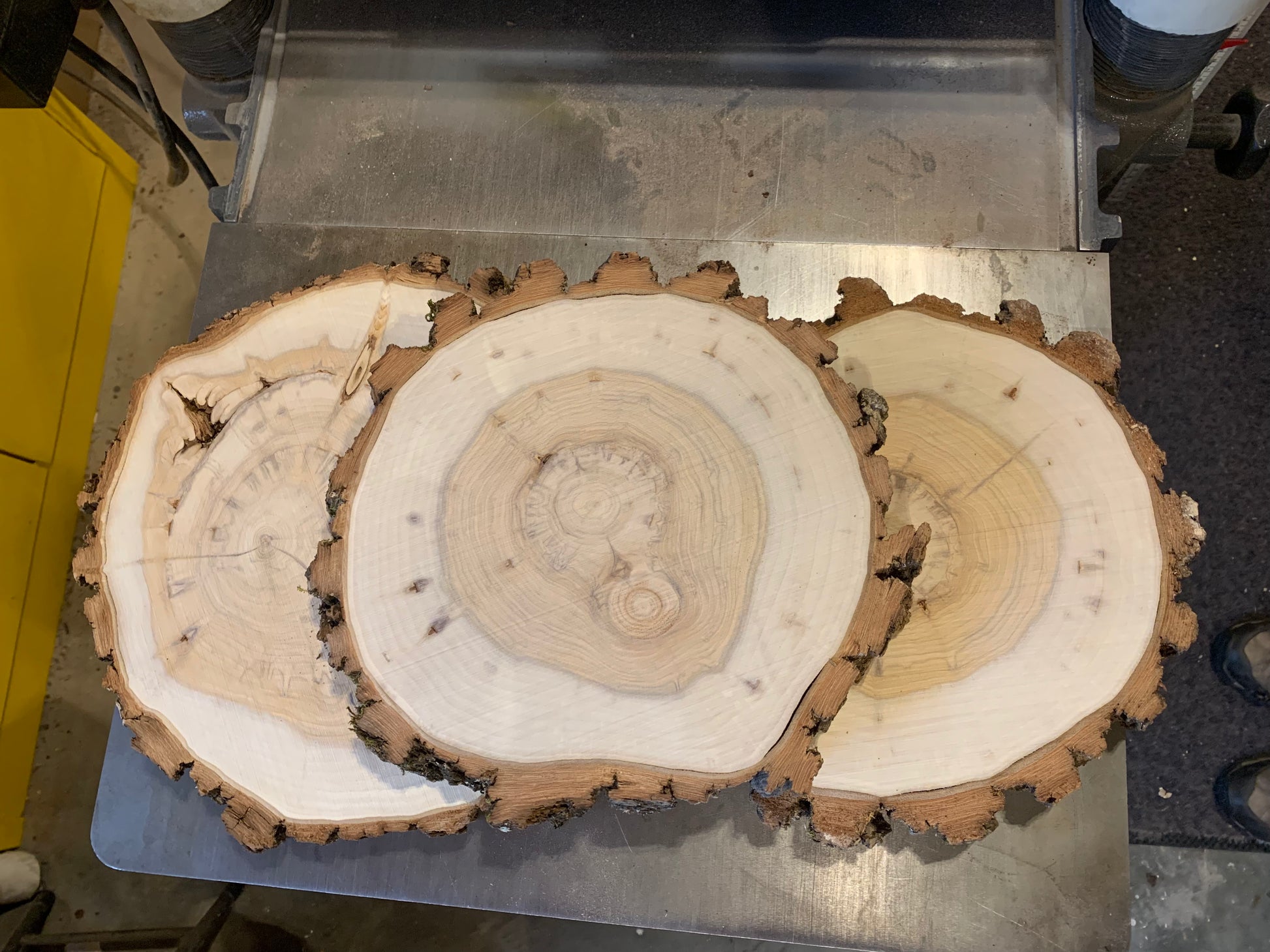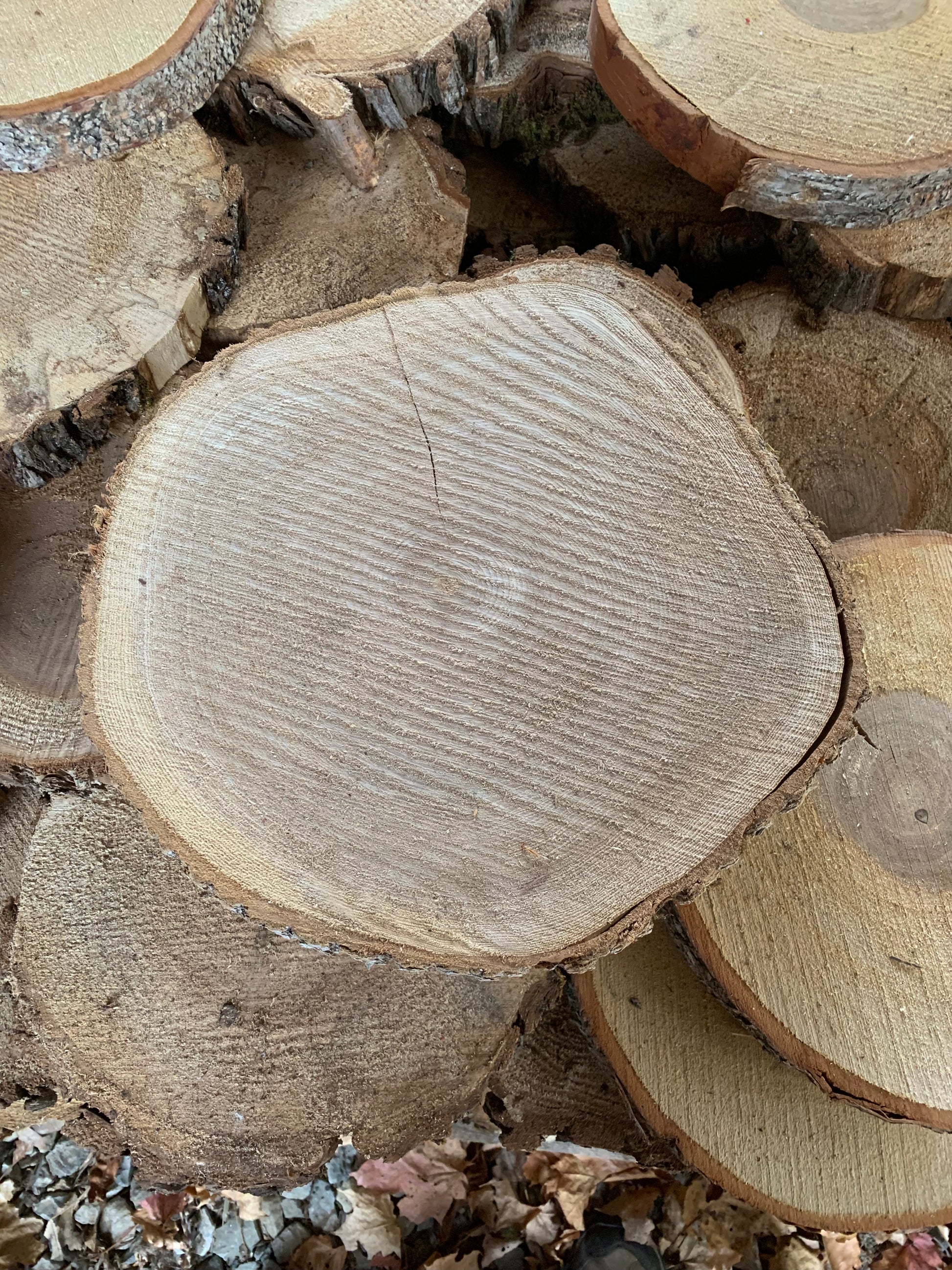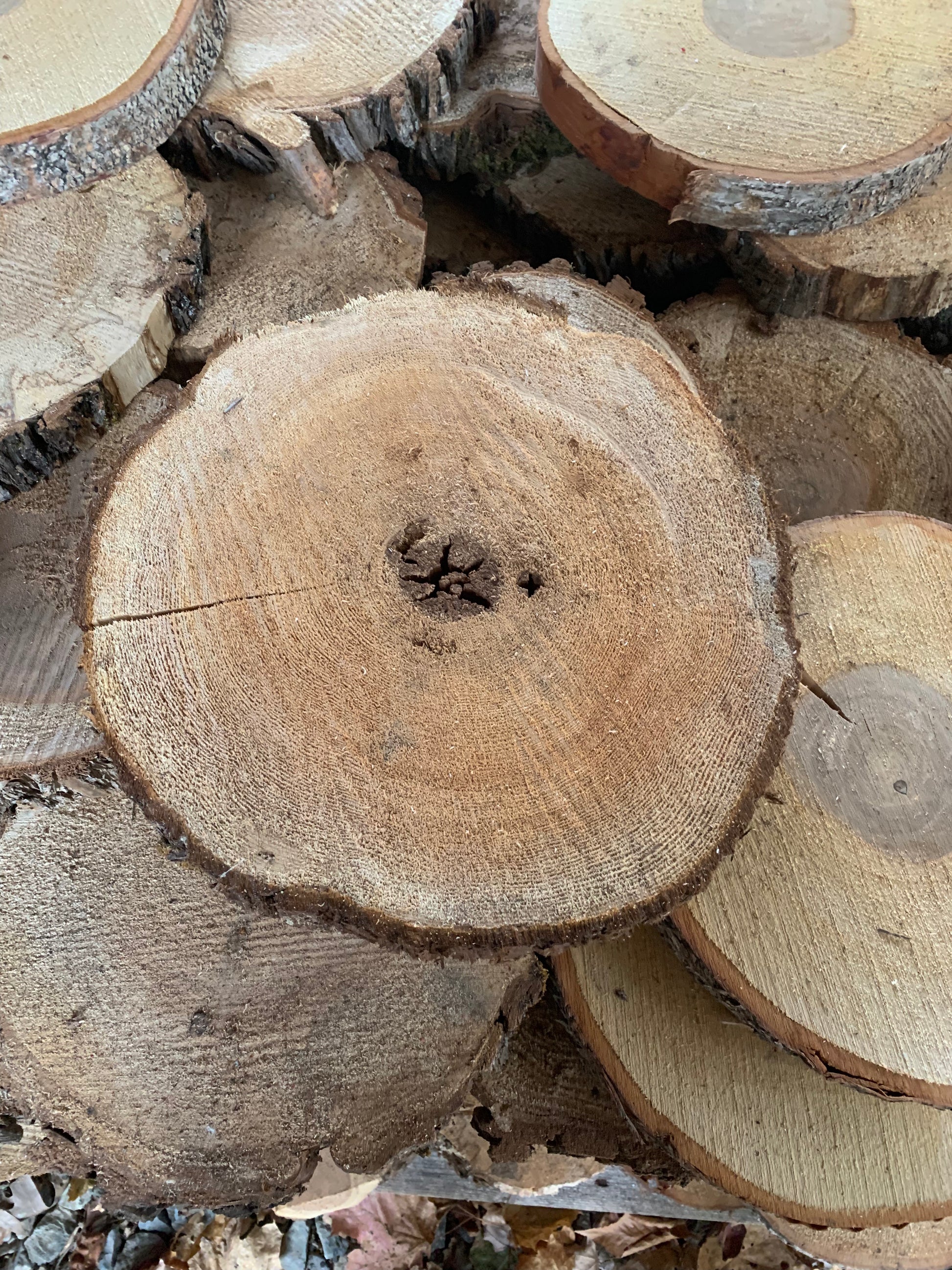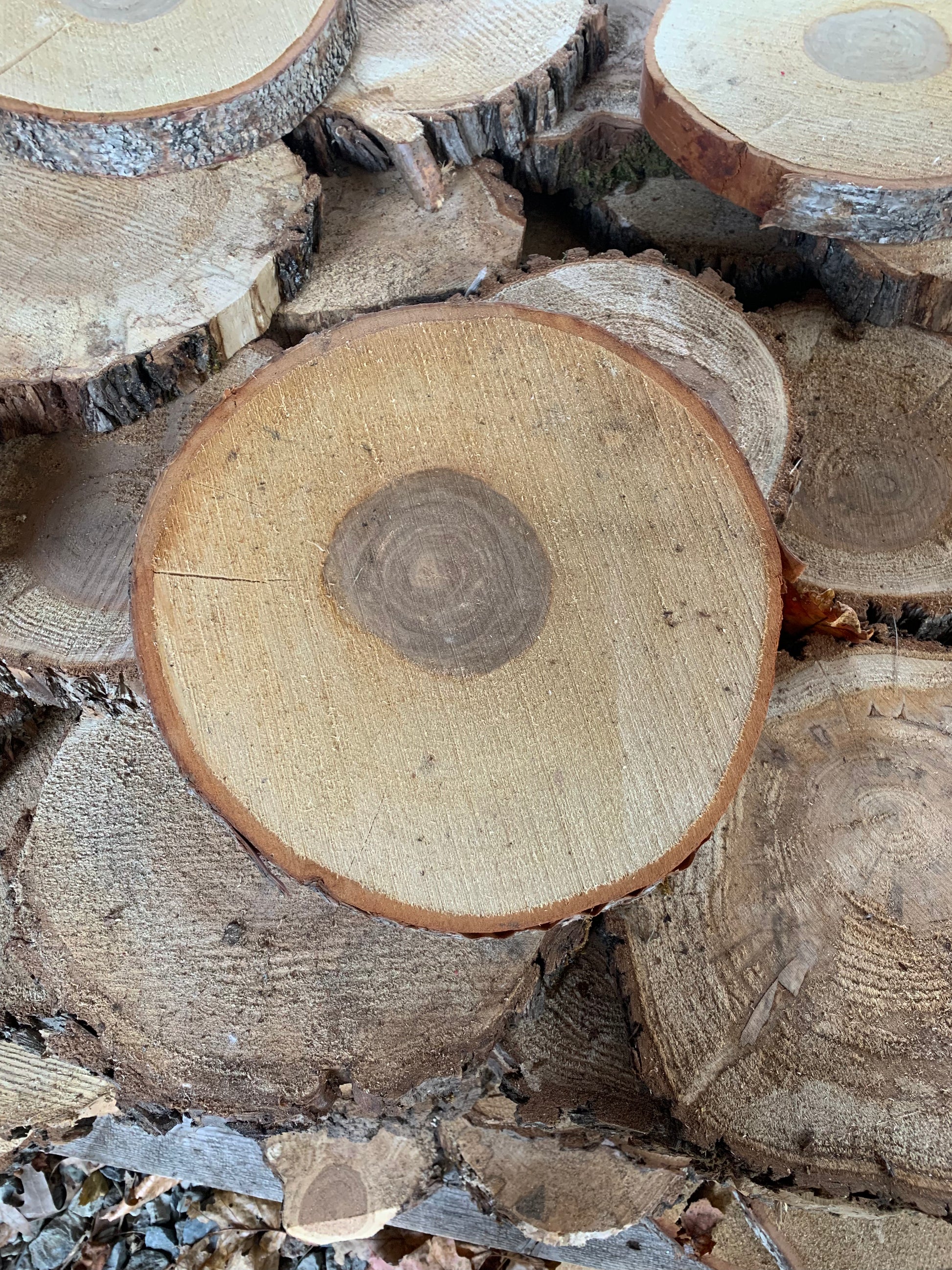 Various species of end-grain wood cut on a sawmill to 1.5" and dried.